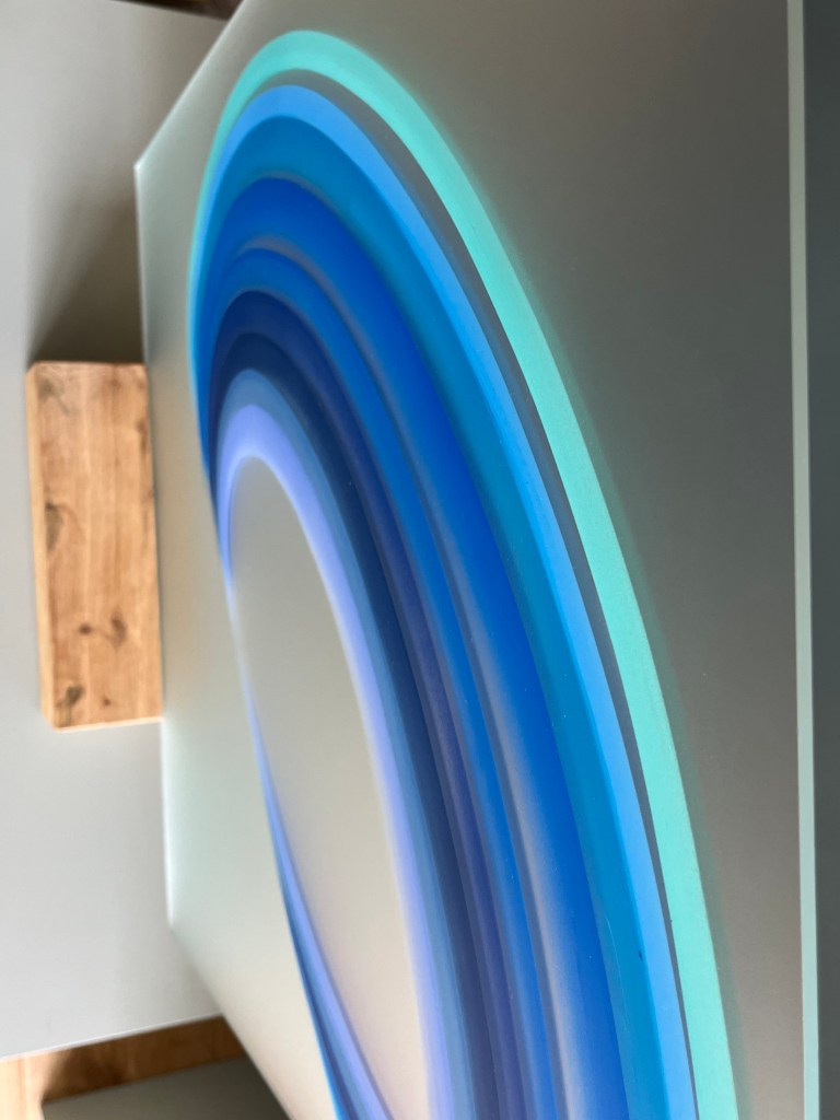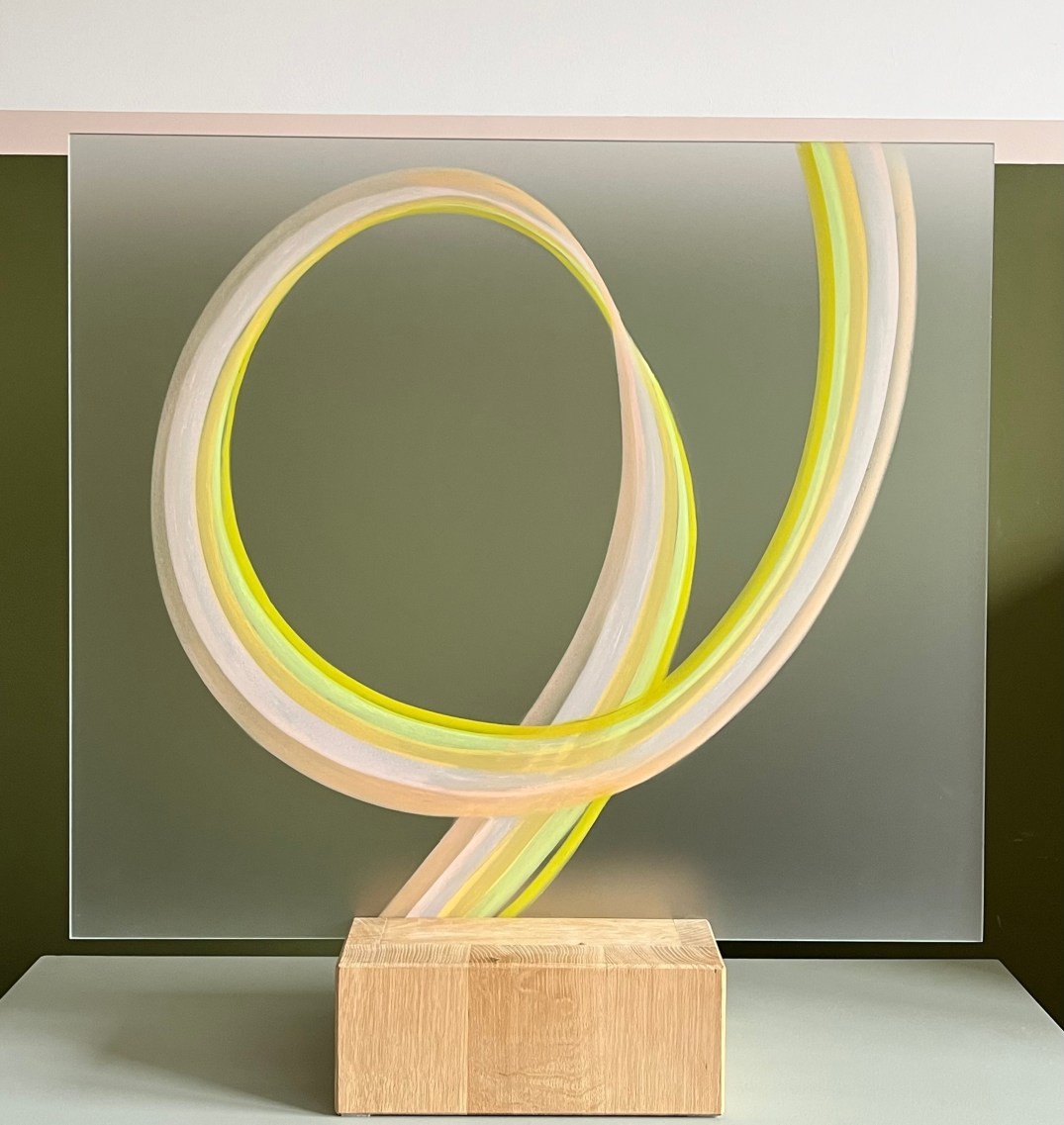 May 2025 Material: Neopastel on satin glass. Size: 64x64x20cm (hxwxd) incl. standard