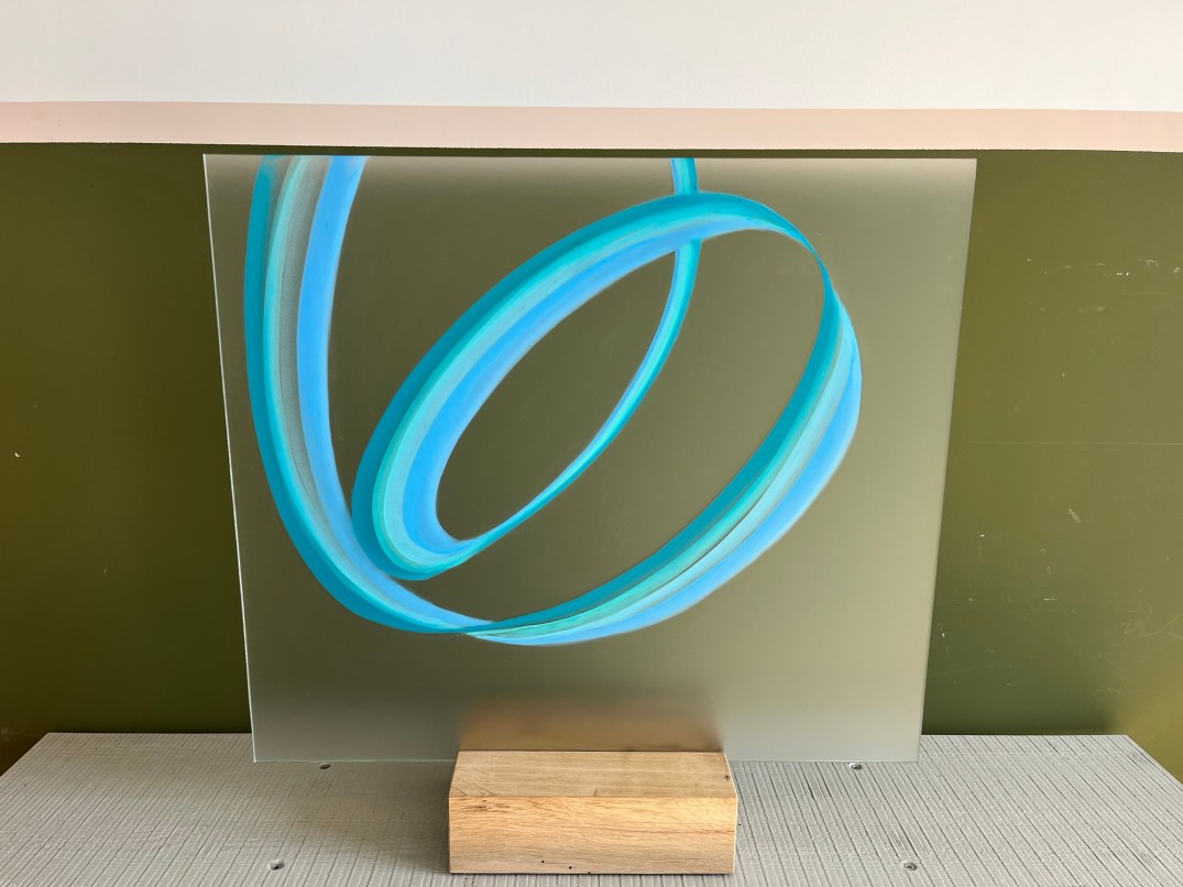 July 2025 Material: Neopastel on satin glass. Size: 99x84x17,5cm (hxwxd) incl. standard