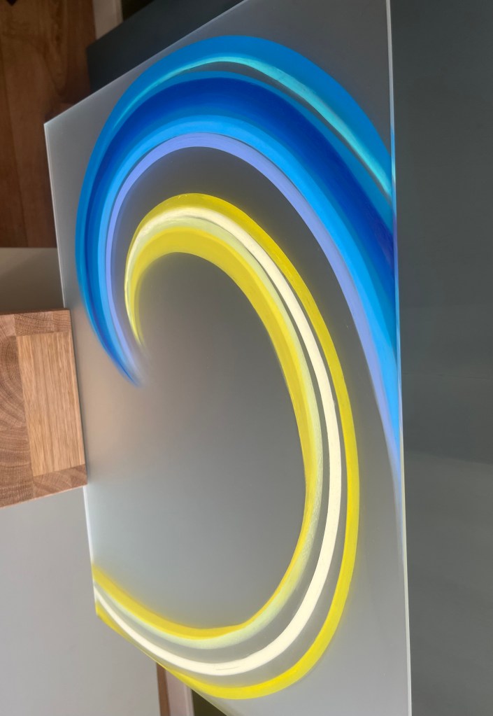 December 2024 Material: Neo pastel on satin glass. Size: 60cm diameter.